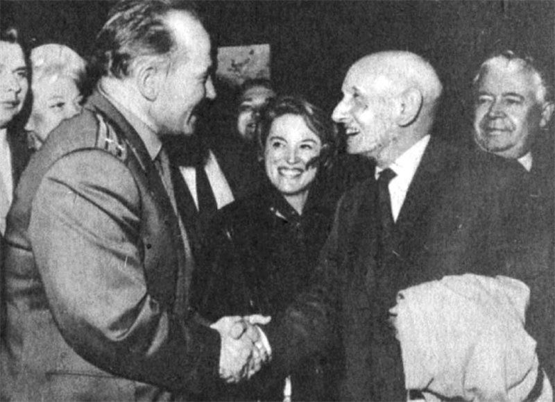 12 апреля 1966 года летчик-космонавт СССР Алексей Леонов знакомится с внуком писателя Жаном Жюль-Верном. Снимок парижского Агентства иллюстраций для прессы (Agip).
