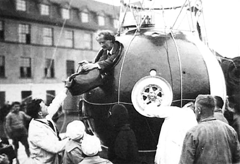 Огюст Пикар в созданной им гондоле батискафа. Фото сделано неизвестным в августе 1932 года.