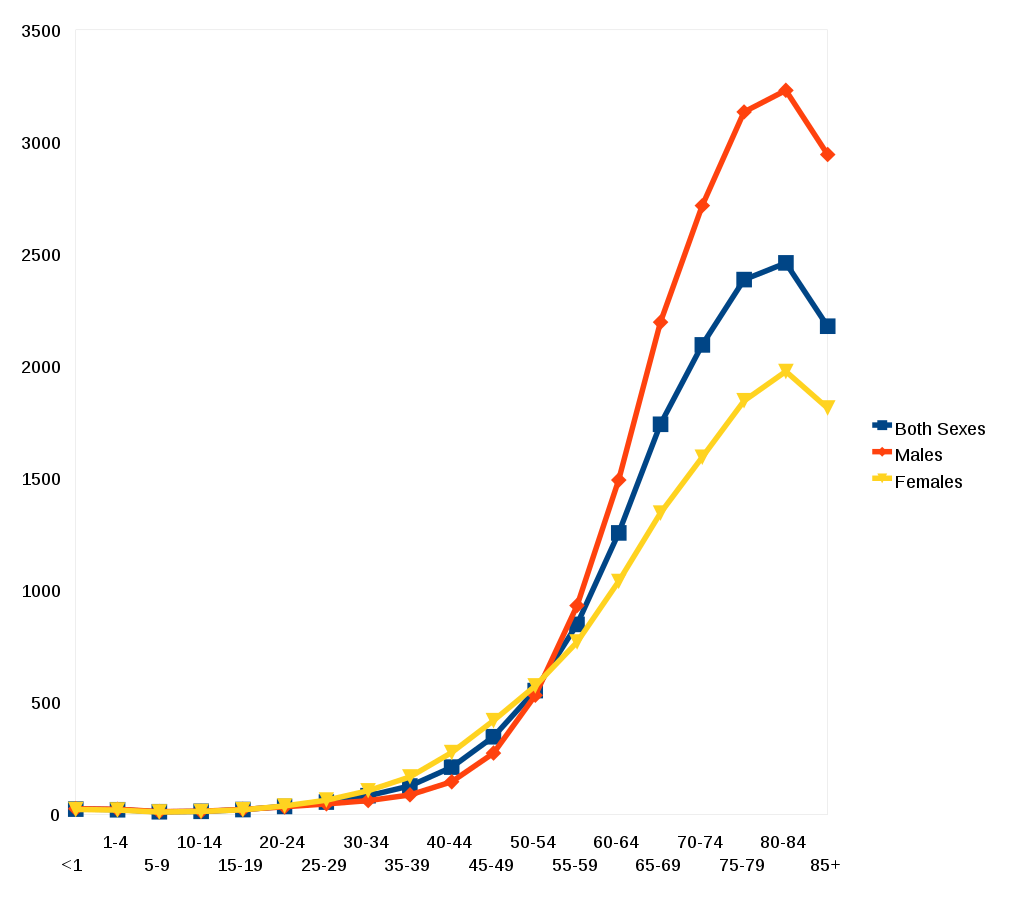 Аналогичные графики можно найти для всех возрастных патологий. Форма этих графиков будет идентичной.