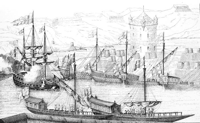 Русский флот под Азовом. Гравюра по оригиналу А. Шконебека. 1700 год