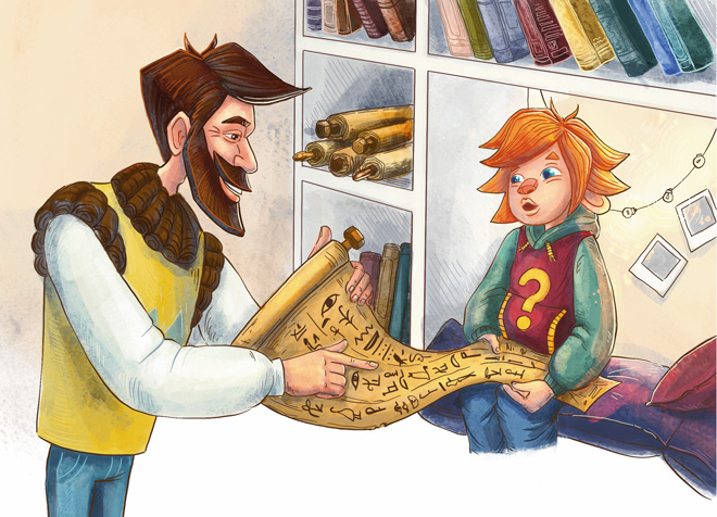 – Папирус – это материал, на котором можно писать. Его делали из растения, которое тоже называется «папирус». Его собирали на заболоченных берегах реки Нил. Обработанные листы папируса не складывали в книжку, а склеивали край к краю, так что получался длинный свиток. А рассказываю я это тебе, чтобы ты понял, что изобретения появляются тогда, когда в них возникает необходимость.