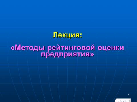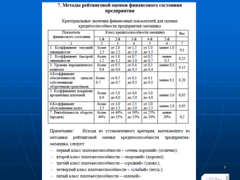 Лекция в слайдах «Методы рейтинговой оценки предприятия»