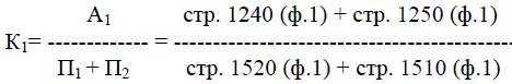 К1 показывает, какую часть краткосрочной задолженности организация может погасить в ближайшее время за счёт денежных средств.
