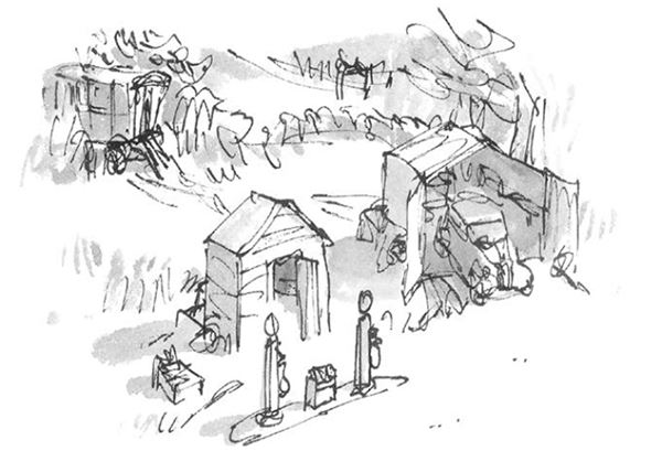 А в кибитке жили мы, и она была нам родным домом. Это была настоящая старая цыганская кибитка с большими колёсами, вся красиво разрисованная жёлтыми, красными и голубыми узорами. Папа говорил, ей лет сто пятьдесят, не меньше. Немало цыганских детишек, говорил он, родились и выросли в её деревянных стенах. Когда-то давно наша кибитка, запряжённая конём, прогромыхала, должно быть, тысячи миль по дорогам и тропинкам Англии. Но теперь её странствия были окончены, деревянные спицы в колёсах начали гнить, и папа подпёр её снизу кирпичами.