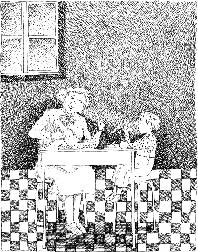 – Ещё чего не хватало, – говорит бабушка и хлопает Фридера по рукам. – Вкусненького ты хочешь, и больше ничего! Я ж тебя знаю! Давай-давай, марш из кухни, лакомка!