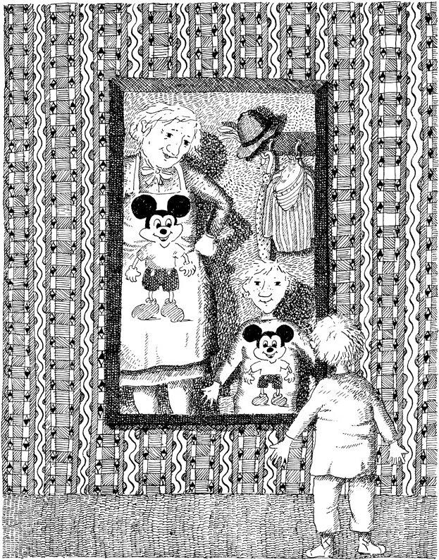 – Смотри, бабушка! – ликует он и мчится на кухню, где бабушка, стоя у плиты, повязывает фартук. – Бабушка! – кричит Фридер. – Бабушка, теперь у меня всё-таки есть Микки-Маус!