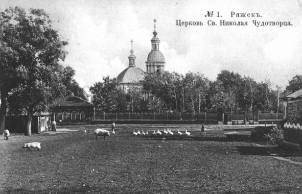 …На самом деле, церковь здесь стояла и раньше – о первом, деревянном храме в честь Николая Чудотворца в Ямской слободе Ряжска известно с начала XVII века. Сохранилось даже имя одного из его первых настоятелей, Онисифора, который управлял им с 1676 до 1691 год. И есть у меня обоснованное подозрение, что все последующие церковнослужители в Никольской были его потомками. Если срастутся все наметившиеся генеалогические цепочки, а до этого момента не так уж много осталось, то среди многих других пра-пра-пра-правнуков Онисифора окажется и Дмитрий Ефимович Ряжский…