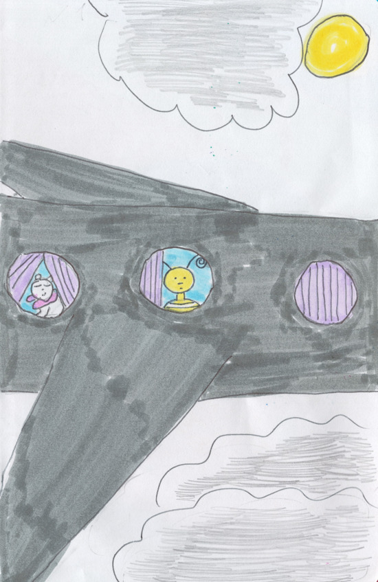 И через несколько дней Пчелёнок со своими друзьями уже летели в самолёте.