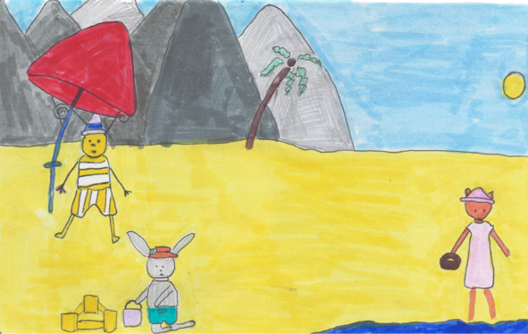 Накупавшись вдоволь, они пошли на пляж и стали заниматься разными делами. Пчелёнок сел под зонтик отдыхать. Аня пошла гулять по пляжу.