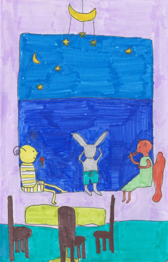 Уже был вечер, но друзья сидели на окне в гостиной, ели мороженое и любовались на звезды.