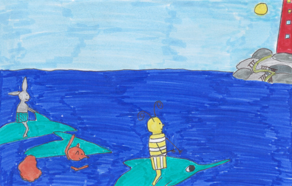 – Привет! – закричал Пчелёнок. – Ой, как много дельфинов!