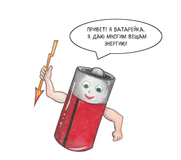 Без неё наша жизнь не была бы такой яркой и весёлой. Она даёт многим вещам энергию! Между прочим, многие твои игрушки не могут жить без Батарейки. Оглянись вокруг себя и найди всё, что живёт с помощью неё. Ты увидишь, как она важна.