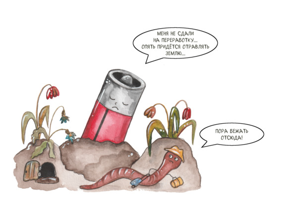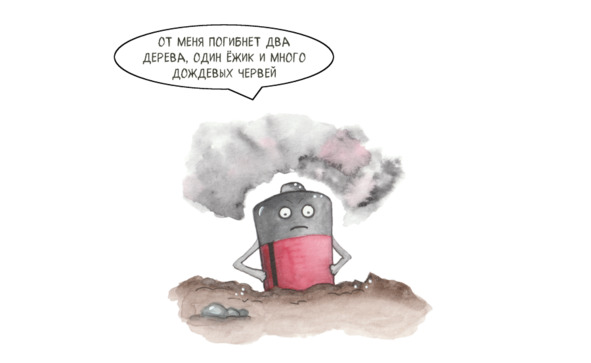 Представляешь, от одной такой Батарейки погибают два дерева, один ёжик и тысячи полезных дождевых червяков.