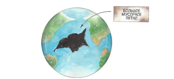 Представляешь, в океане появился целый остров из Пакетов и другого пластика! Его называют Большое мусорное пятно. Он находится вот здесь.