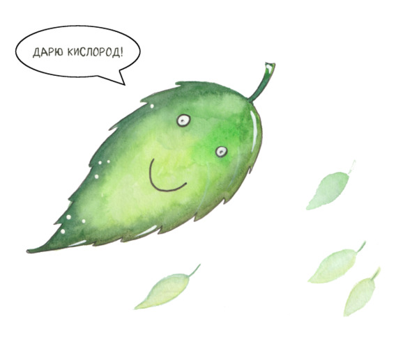 Чтобы дышать, нужен кислород. Кислород Планете даёт Лес. «Откуда он его берёт?» – спросишь ты. Он делает его с помощью листьев. На деревьях в лесу их очень-очень много. И каждый листик упорно трудится изо дня в день – вырабатывает тот самый кислород. Вот соберёт Лес все свои силы, настроится на рабочий лад и выдохнет целое облако полезного кислорода. А Планета подхватит его и вдохнёт в себя. От кислорода она становится ещё красивее, а всё живое на ней – счастливее. И даже ты.