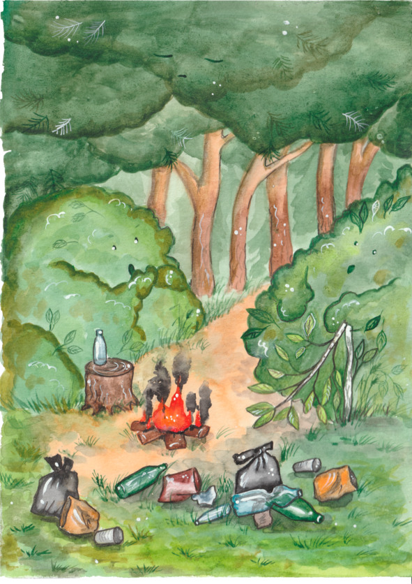 Самое важное – запомни: костры могут жечь только взрослые, потому что они знают, как и где можно это делать. И когда это разрешено. Костёр нужно за собой обязательно потушить. Так Лес останется невредимым. Деревья в лесу живые. Любая отломанная веточка приносит им боль. Пусть они растут радостными!