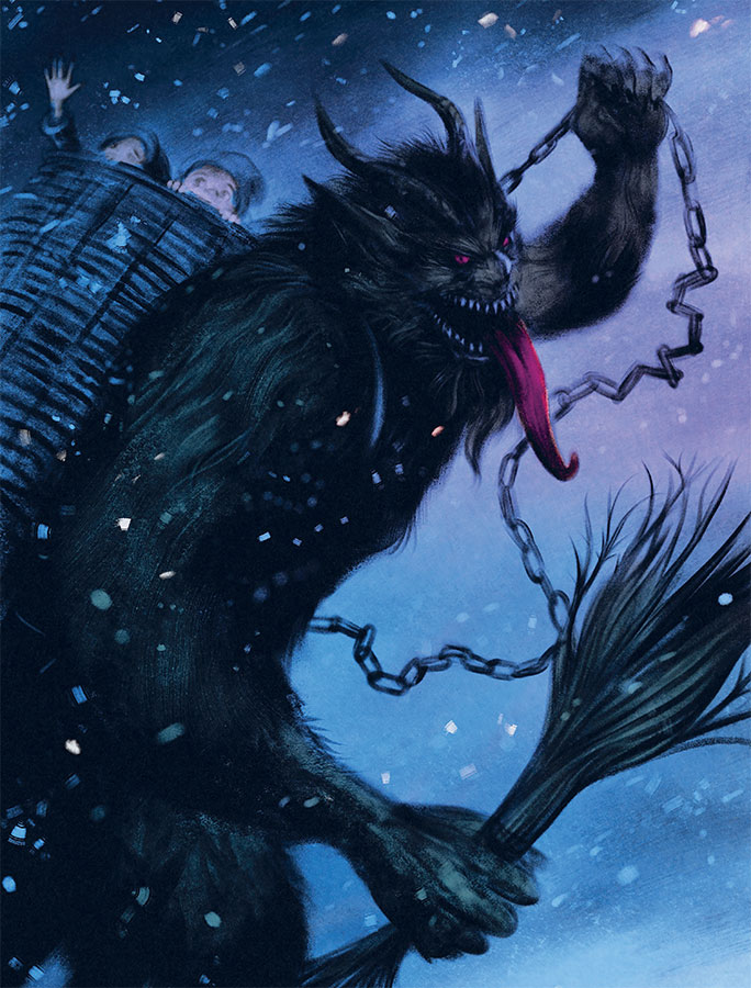 Крампус – конечно же, старейшина европейских монстров зимних праздников: наводящий ужас мохнатый демон с отвратительным поведением, которому не терпится выйти в снежную ночь и натворить бед. Он, конечно, не самый древний из существ, являющихся в праздники, но в наши дни, безусловно, самый известный, поэтому вполне естественно, что именно он открывает наше леденящее душу шествие.