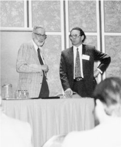 Рис. 4.3. Представление президентского обращения в рамках североамериканских встреч Эконометричес кого общества в Чикаго в 1978 г. Слева от Яноша Корнаи – Тьяллинг Куп манс, председатель этой сессии