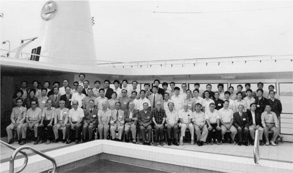Рис. 4.4. Конференция на корабле во время путешествия по реке Янцзы, Китай, 1985 г. Среди участников – Джеймс Тобин и Отмар Эммингер, экс-президент Бундесбанка