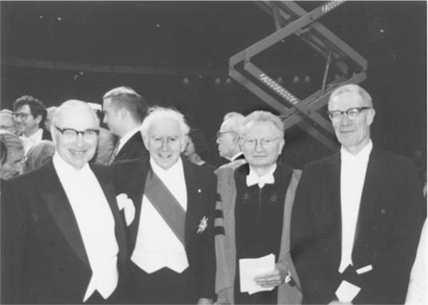 Рис. 5.2. Встреча лауреатов Нобелевской премии. Стокгольм, декабрь 1991 г. Слева направо – Кеннет Эрроу, Франко Модильяни, Пол Самуэльсон и Роберт Солоу