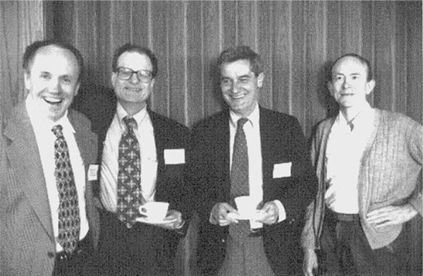 Рис. 3.3. Эд Прескотт, Том Сарждент, Роберт Лукас и Баз Брок на конференции