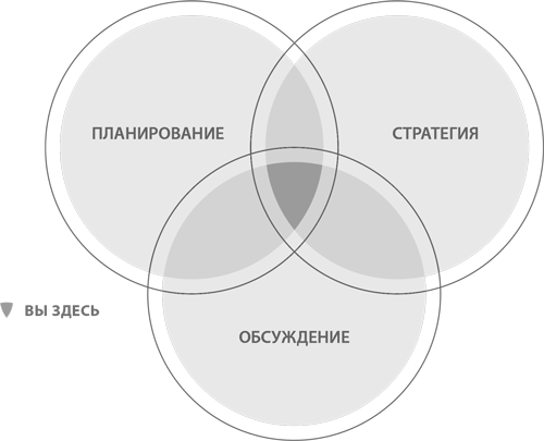 Наша работа и эта книга стоят на трех китах: это стратегия, планирование и обсуждение (или групповой диалог). Наша цель заключается не в том, чтобы предложить новшества в этих трех областях, без того изобилующих великими идеями и исследованиями, о которых мы будем рассказывать на страницах этой книги. Скорее, мы будем уделять наше внимание точке их пересечения. Это пространство, которое на сегодняшний день не получает достаточного внимания, но становится все более важным для достижения успеха, а порой и для выживания организаций.