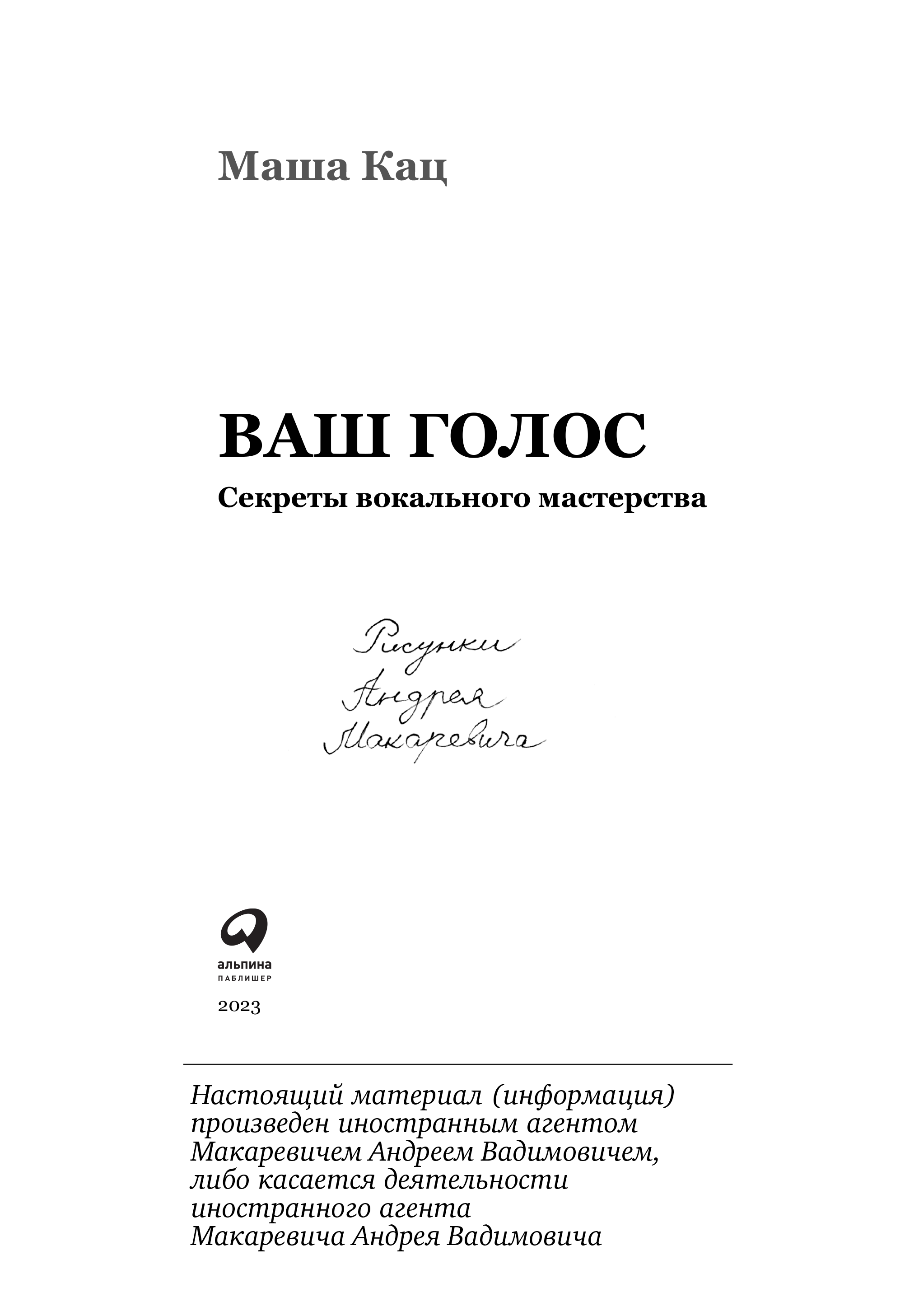 Судьба свела меня с автором этой книги во время работы над русской версией сложнейшего рок-мюзикла «Пробуждение весны». С Машей Кац нас познакомил Кирилл Серебренников, с которым мы вместе ставили этот спектакль. Видимо, Кирилл устал смотреть на мое унылое выражение лица после каждой репетиции – к тому моменту я почти отчаялся, понимая, что драматические артисты никогда не смогут спеть материал подобной сложности. Легче до Луны на велосипеде доехать. И тут появилась Маша. Меньше всего она была похожа на педагога по вокалу и вообще на человека, который способен читать нудные лекции и часами распевать со студентами сложные вокальные арпеджио. «Дайте мне время, и я постараюсь вам помочь», – просто сказала она. На спевке через неделю я не мог поверить своим глазам и ушам. Нет, наши артисты не превратились в Паваротти и Нетребко, но в них появилась уверенность в себе, уверенность в том, что их собственный голос им подвластен, а с уверенностью пришли удовольствие и драйв, которые с легкостью транслировались в зал. За последние несколько лет работы с Машей я постоянно вижу эти метаморфозы и блеск в глазах каждого артиста, в каждом новом театре – «Рождество О. Генри» в Театре имени Пушкина, «Гордость и предубеждение» в МХТ, «Суини Тодд» в Театре на Таганке. Везде происходит одно и то же! Моя любимая шутка (в которой доля шутки сведена к минимуму) – «у Маши поют даже камни». К сожалению, у драматических артистов вокалу уделяется очень мало внимания, а сегодня в каждом театре есть музыкальные спектакли, и, конечно же, артисты должны думать о задачах, поставленных режиссером, выполнять сложный хореографический рисунок и не задумываться о том, как и каким образом спеть тот или иной пассаж, не взбираться на высокую ноту, как изможденный покоритель Эвереста. Вокал артиста должен быть свободным, и именно эту свободу и дает работа с Машей Кац.