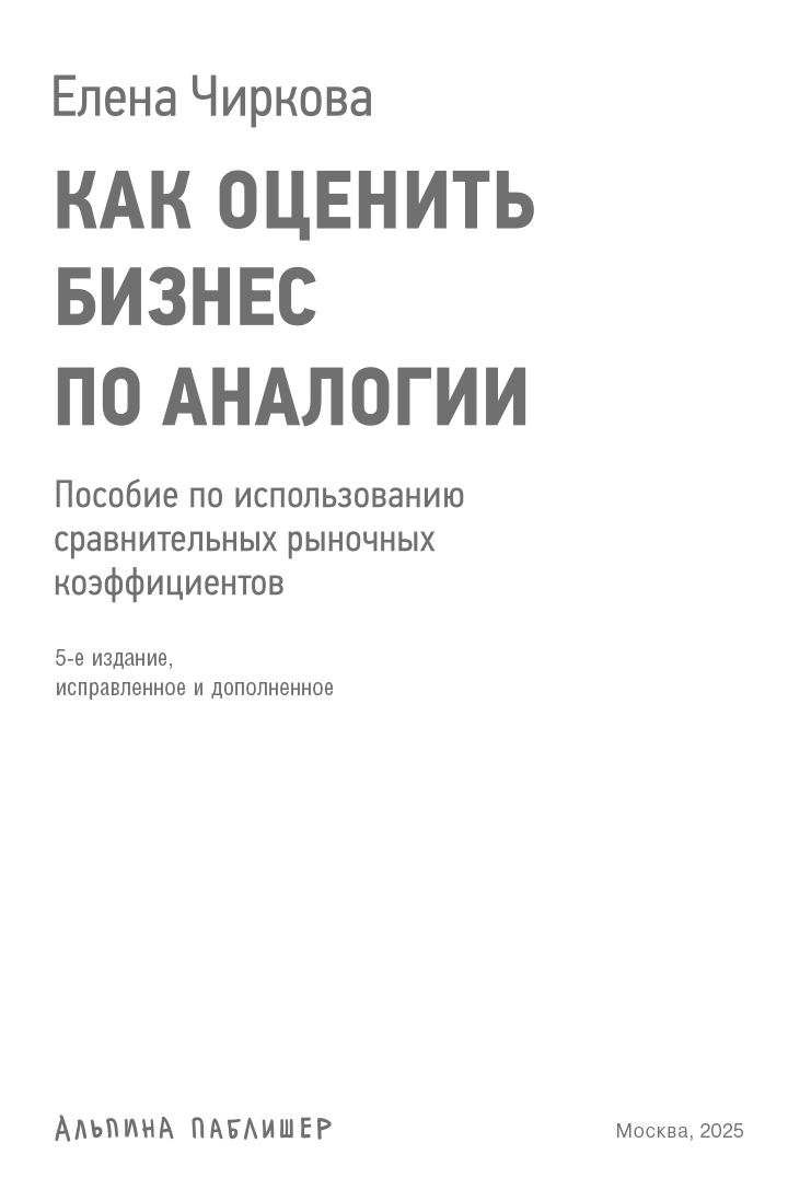 (к четвертому изданию – 2017 г.)Дорогие читатели! Я рада представить вашему вниманию четвертую редакцию моей книги. Разрабатывать тему оценки с использованием сравнительных рыночных коэффициентов (или мультипликаторов) с методологических позиций я начала еще в 2000 г., когда, работая в инвестиционно-банковском подразделении инвестиционной компании, поняла, что теоретических знаний, которые можно почерпнуть из классических финансовых учебников, явно недостаточно. Каждый раз приходилось что-то домысливать, о чем-то догадываться, упираться в невозможность дать разумную интерпретацию полученным результатам и т. д. Например, мы все время сталкивались с огромным (в два раза и более) разрывом в оценке компании при использовании различных мультипликаторов, и постоянно вставал вопрос, какая из оценок ближе к истине. Тогда-то я и начала систематизировать проводившуюся мной и моими коллегами работу по оценке и полученные в ходе нее результаты и «достраивать» для себя теорию сравнительных коэффициентов, весьма скупо изложенную в учебниках по финансам.