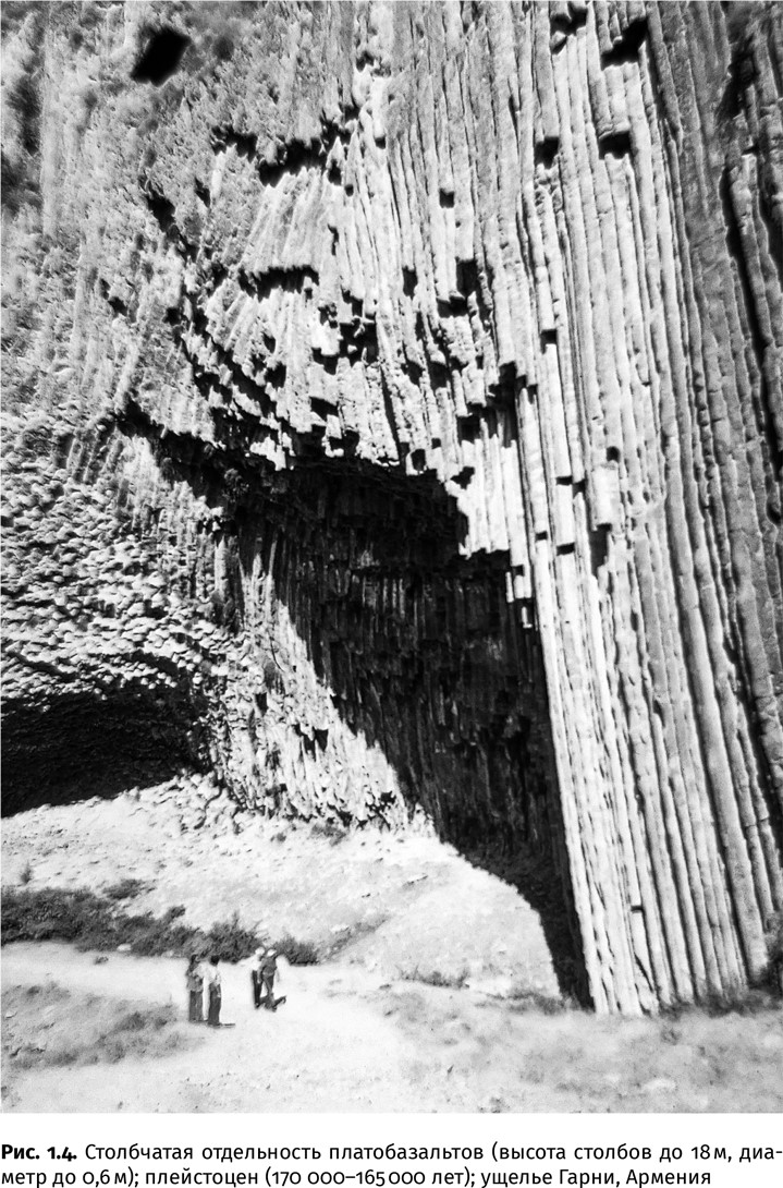 Есть и другие сугубо геологические методы расчета возраста отложений горных пород и отдельных геологических объектов. Например, вулканические конусы базальтовых вулканов благодаря периодическим напластованиям застывших потоков лавы растут со скоростью около метра за столетие (рис. 1.4).