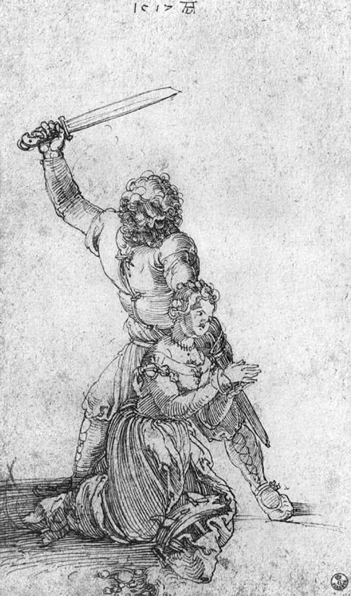 Фронтиспис: Альбрехт Дюрер. «Святая Екатерина Александрийская и палач» (1517 год). Обратите внимание, что палач крепко удерживает святую, стоящую на коленях, прежде чем нанести удар