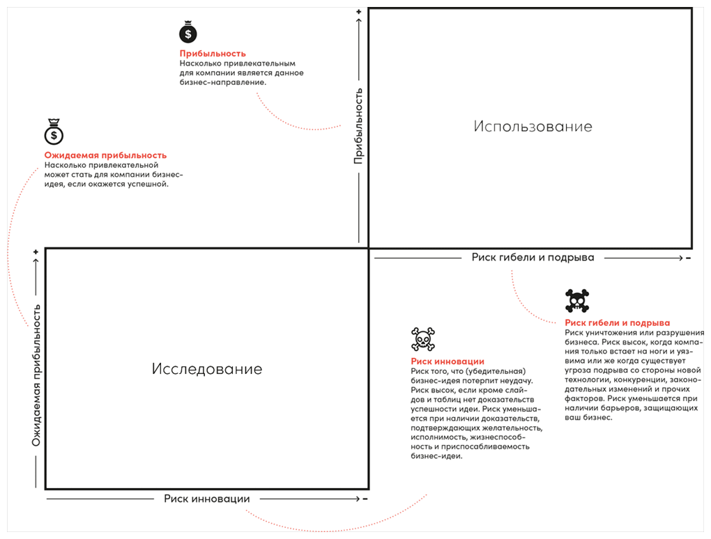 Ваш портфель инновационных проектов, новых бизнес-моделей, новых ценностных предложений, новых товаров и услуг, оцениваемых с точки зрения ожидаемой прибыльности и риска инновации.