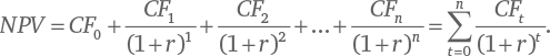 n – номер периода (обычно года). Ноль – это денежный поток нулевого года, то есть денежный поток «сейчас»;