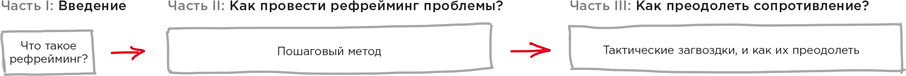 И еще: эта книга написана для непосредственного применения. Вы можете начать работать с методом рефрейминга, не откладывая: читая главу за главой, используйте описанные там инструменты в решении своих реальных проблем.