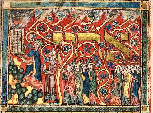 С XIII в. на иллюстрациях к Откровению Иоанна Богослова иудеи становятся вездесущи. Причем художники или, скорее, их заказчики и клирики-«консультанты» явно обостряли антиеврейский посыл Откровения. И изображали иудеев там, где в тексте упоминались абстрактные грешники или отступники, которые, отринув Христа, поступят на службу к Антихристу.