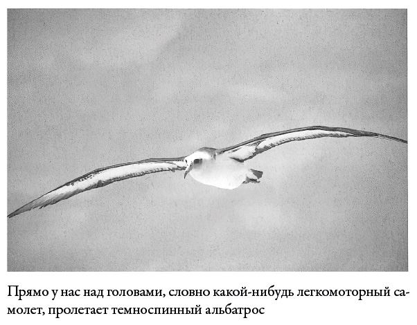 Нас встречает человек 10 или 15, среди которых в основном опытные ученые и их молодые коллеги. Они стояли вдоль взлетно-посадочной полосы и прогоняли с нее птиц во время нашего приземления, а теперь собрались, чтобы поприветствовать новичков. Молодая женщина, которая представилась Мелиссой – просто по имени, без лишних церемоний, – говорит, что сбитую нами птицу, темноспинного альбатроса, удар всего лишь оглушил, она ненадолго потеряла сознание, но теперь уже очнулась и чудом цела. Какое облегчение!