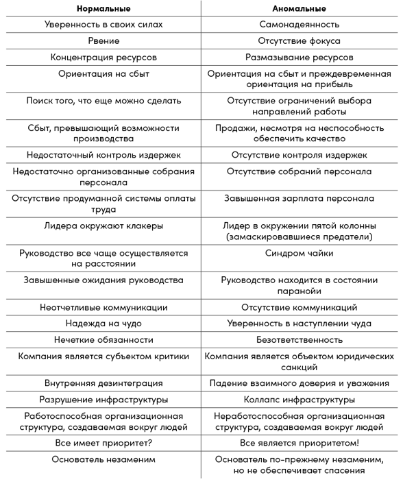 Я предупреждал многих директоров компаний, достигших этапа «Давай-давай», что они сидят на пороховой бочке и все, чего не хватает для начала катастрофы, это маленькой искры. Большинство директоров отмахивались от моих предостережений, указывая мне на то, что они воспринимали как неоспоримый показатель успеха: «Разве вы не видите, что наш сбыт ежегодно растет на 180 %? Мы регулярно попадаем в список наиболее быстро развивающихся компаний США. Биржевая стоимость акции нашей компании выросла с $2 до $12».
