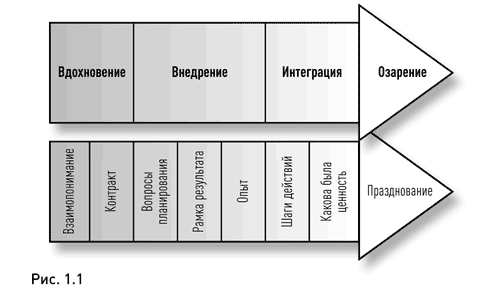 Чтобы распознать поток внутренней истины во всех проявлениях, нужно исследовать все его этапы так же, как мы исследуем и проводим коучинг любого важного проекта. Эти этапы можно обозначить, как вдохновение, внедрение, интеграция и озарение. Каждый из них представляет собой уникальный трамплин, позволяющий совершить прыжок к осознанию. Необходимо понимать, на чем они основаны и что все они подводят к важным коучинговым разговорам о жизненном пути. Держа в голове эти четыре этапа, вы можете метко выпустить стрелу так, чтобы она попала в центр мишени.