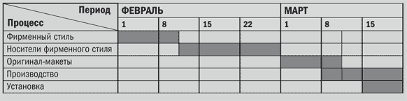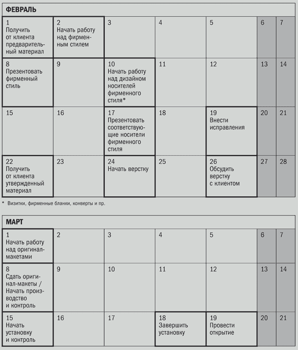 График показывает, сколько времени отводится на выполнение каждой стадии процесса подготовки дизайна. Он позволяет оценить, как продвигается работа, и гарантировать, что времени для достижения удовлетворительного результата достаточно.