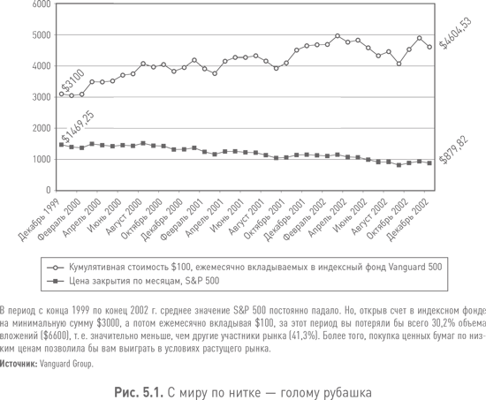 Рис. 5.1 иллюстрирует волшебную силу метода усредненного равномерного инвестирования в условиях недавнего медвежьего рынка.