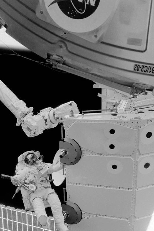 С тех пор как я стал астронавтом, я представлял себе выход в открытый космос как сцену из кинофильма: звучит торжественная музыка, громкость нарастает, я элегантно отталкиваюсь от корабля и выхожу в черное, как смоль, бесконечное космическое пространство. Но все прошло не слишком романтично. Я был вынужден запастись терпением и неуклюже протискиваться через люк, оставить возвышенные чувства и сосредоточиться на рутине: постараться не ободрать свой скафандр и не запутаться в страховочном фале, чтобы не предстать перед Вселенной стреноженным, словно теленок.
