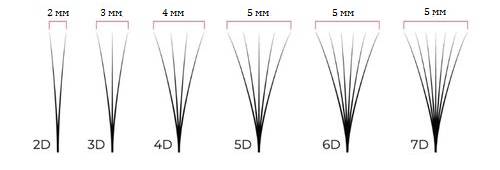 При раскрытии менее 2 мм, ресницы смотрятся достаточно грубо, и работа не получится натуральной, будет “утяжелять” взгляд. Также с узкими пучками клиент не получит желаемого объема, прикорневая зона не будет заполнена, работа будет выглядеть скудно.
