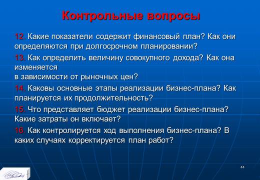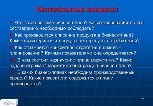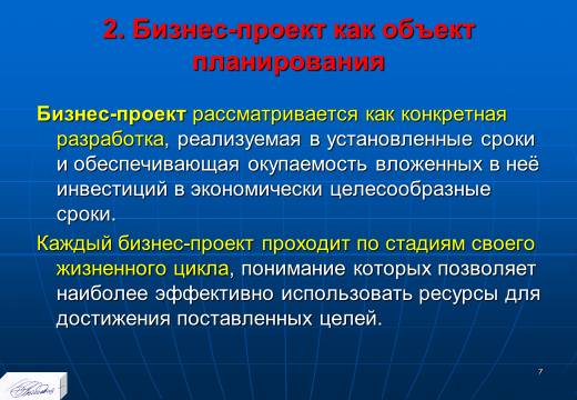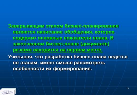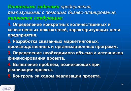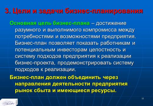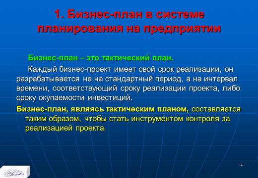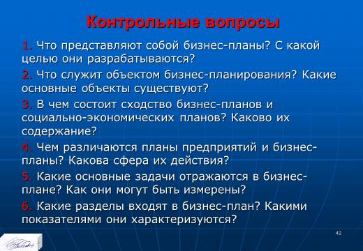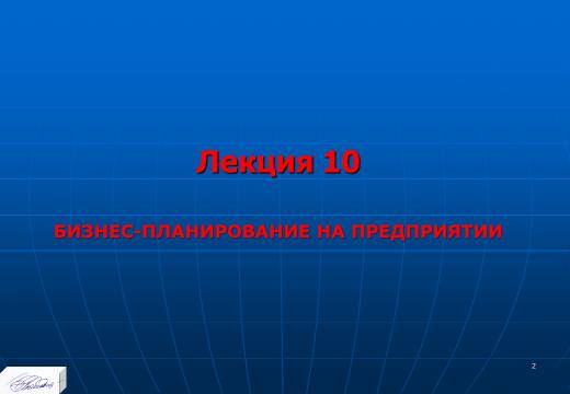 «Бизнес-планирование на предприятии» лекция в слайдах с тестами