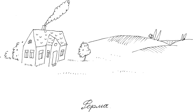 Перед очагом сидела на корточках девочка и подкладывала в огонь хворост. Черная кошка дремала у хижины. Несколько куриц что-то клевали.