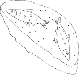 Тетя Мартина унесла на кухню корзину с рыбой. Было слышно, как она ее чистит. Вскоре в сковороде задымилось масло. Мы пригласили Баргабо за стол. Тетя Мартина принесла кувшин с вином, ржаной хлеб и бутылку с уксусом.