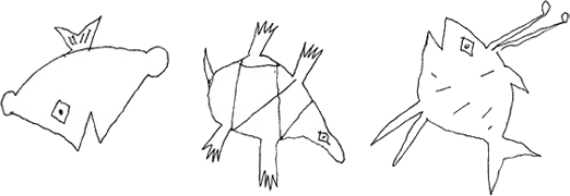 Когда убрали последнюю тарелку, по-прежнему молчаливый Баргабо принялся кончиком длинного ножа чертить на столе странные фигуры. Это были змеи, речные черепахи и неизвестные фантастические рыбы; у одних топорщились колючки, у других, с огромной головой, были разинуты устремленные в пустоту прожорливые рты.