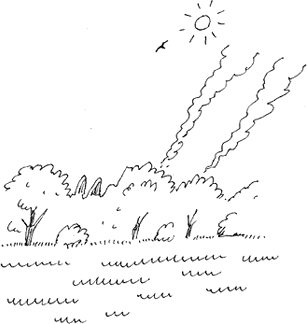В эту минуту теплый ветер принес горьковатый запах костра. Воспоминание о том, что уже дважды я видел дым среди деревьев, вновь ожило во мне. «Надо посмотреть, что там», – подумал я. Пробравшись сквозь кустарники, я попал на лесную опушку.
