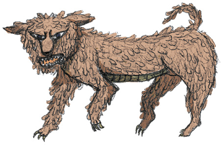 Прошлой ночью один из воинов упал в обморок. Остальные же были заняты тем, что пытались найти лекаря. Позже солдаты увидели, как из комнаты вышло чудовище, похожее на собаку, но размером с жеребенка. Из комнаты, в которой оно находилось, сильно пахло рыбой.