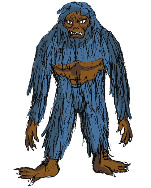 Огромных размеров демон с голубым мехом и заостренными ступнями