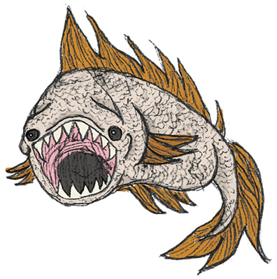 Киты особенно боятся золотых кровавых рыбок, потому что встреча с этими хищниками грозит им неминуемой смертью. Золотые кровавые рыбки – мелкие стайные рыбешки длиной 1–2 дюйма. У них невероятно острые плавники и чешуя. Хищные твари очень любят китовое мясо. При встрече с китом окружают добычу со всех сторон. Если кит попытается съесть золотых кровавых рыбок, он умрет от того, что чешуя и плавники хищников пробьют его кишечник изнутри. Шансов спастись у кита нет. Уплыть он не может: чудовища молниеносно настигнут его. Как только кит устанет, стая маленьких хищников накинется на него, и море окрасится в багровый цвет.