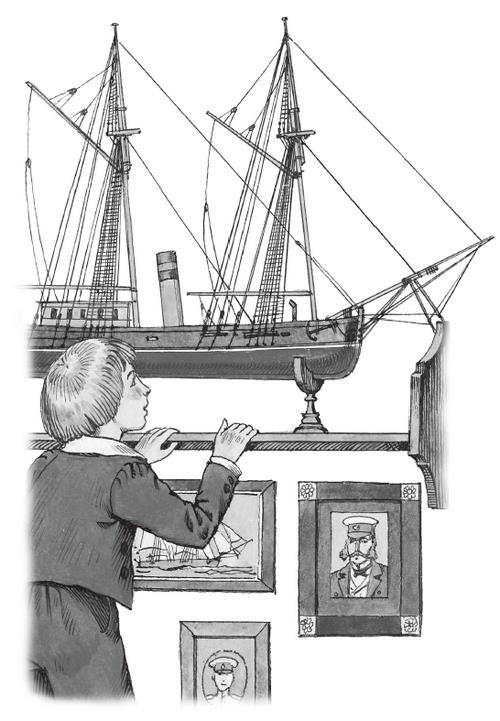 Когда я был маленький, меня отвезли жить к бабушке. У бабушки над столом была полка. А на полке пароходик. Я такого никогда не видал. Он был совсем настоящий, только маленький. У него была труба жёлтая, и на ней два чёрных пояса. И две мачты. А от мачт шли к бортам верёвочные лесенки. На корме стояла будочка, как домик. Полированная, с окошечками и дверкой. А уж совсем на корме – медное рулевое колесо. Снизу под кормой руль. И блестел перед рулём винт, как медная розочка. На носу два якоря. Ах, какие замечательные! Если б хоть один у меня такой был!